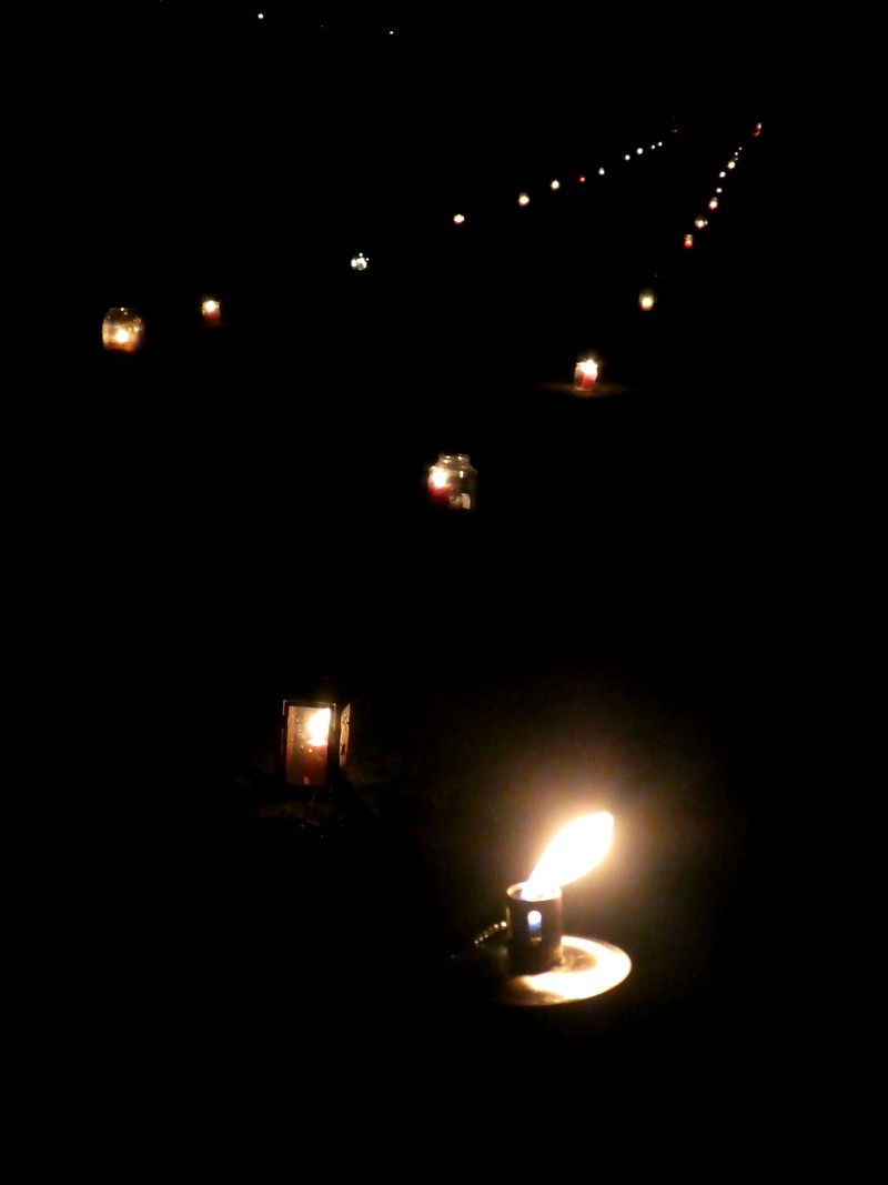 Neu war in diesem Jahr der Sternenabend. Wir feierten am 2. Adventssonntag die Beleuchtung unseres Sternes. Ein mit Kerzen und Fackeln gesäumter Weg führte uns von der Straße zum Feuerplatz. Von wo aus man den Stern gut sehen kann. Nach der Begrüßung las die Pfarrerin Frau Keller uns eine Sternengeschichte vor.
